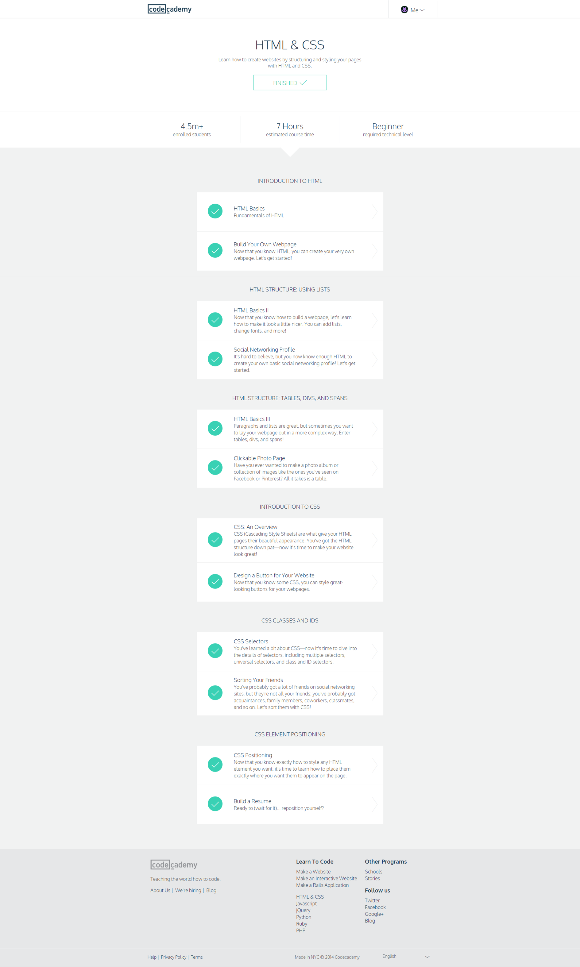 W3Schools show more depth on HTML, HTML 5, CSS Quiz. Codecademy helped me to practice and learn how to make coding.