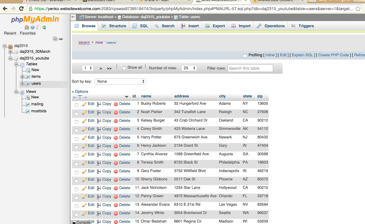 I learned how to start my own database, how to create queries and show them as a table from Buckys tutorials over Hostgator and phpadmin.